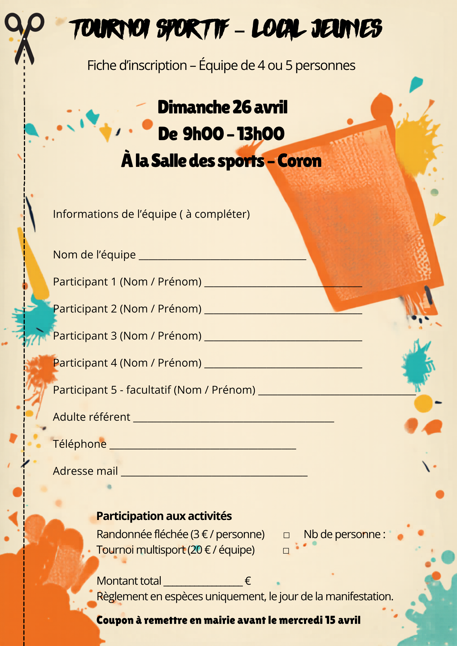 Votre équipe est formée ? Faites-le nous savoir en remplissant le coupon ci-dessous et remettez-le en mairie avant le mercredi 15 avril.