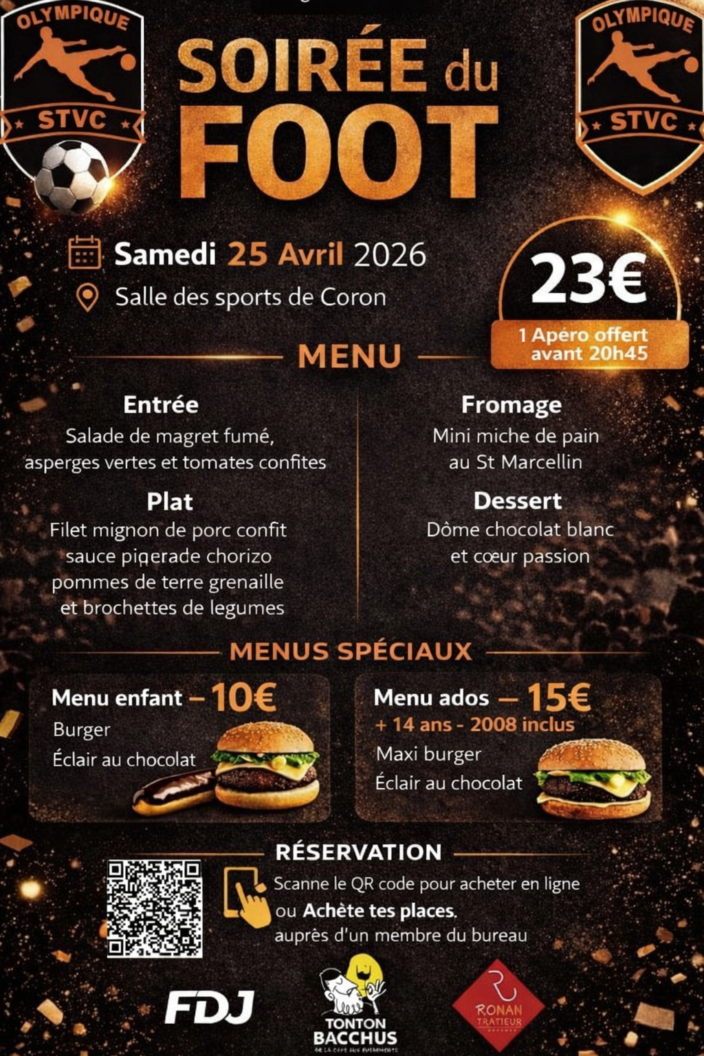 Réservation en scannant le QR code directement sur l'affiche ou auprès d'un membre du bureau.