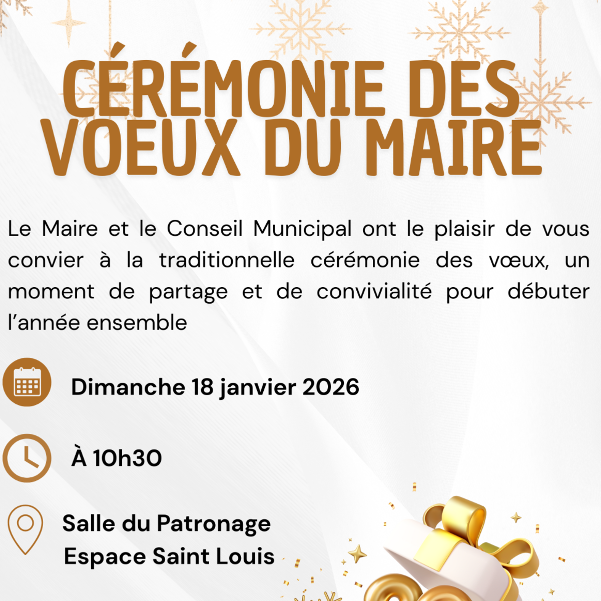 Monsieur le Maire et les membres du Conseil municipal ont le plaisir de convier l’ensemble des habitants à la cérémonie des vœux.